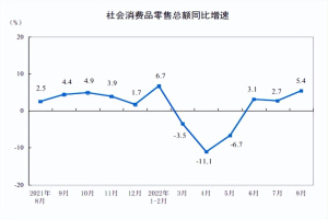 社会消费品零售总额同比增加5.4%