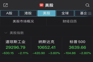 当地时间周五,美股低开低走,三大指数集体大跌。