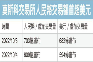 数据显示,10月初的中俄人民币结算量比9月就高出了1.5倍,显示较大的增长速度。此外,俄罗斯国内已经把美元储备份额从13年的41.6%降低到现在的不到10%,取美元而代之的,就是人民币份额的不断扩大。