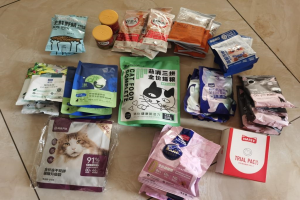 陈大姨在“双11”购买的囤货,9.9元一份的猫粮试吃装,有13种。