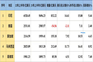 再看看新加坡:2022年上半年,新加坡GDP为2115亿美元,在东南亚6国中排第三,仅次于印尼、泰国,未来可能会超过泰国。2021年新加坡的GDP接近3970亿美元,2022年上半年已超过了2100亿美元,全年可能会突破4300亿美元。10月15日,新加坡官方预测今年GDP增速约3%-4%。