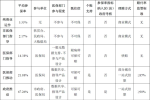 与上述两种模式相对,行政部门不介入或介入程度较低的“非医保部门支持模式”、“纯商业运作模式”、“医保部门指导模式”三种惠民保模式,保费明显下降,参保率总体下降。在这三种模式下,一部分产品对于既往症患者不赔付或对既往症患者理赔条件严格,部分城市的医保部门虽然下发了鼓励惠民保发展文件,但通常不提供数据支持,不参与产品设计,不支持职工医保个人账户资金划扣缴纳保费。