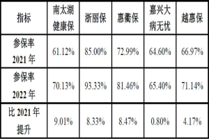公开信息显示,2022年,浙江湖州的“南太湖健康保”、丽水的“浙丽保”、衢州的“惠衢保”、嘉兴的“嘉兴大病无忧保”、绍兴的“越会保”,在政府推动下参保率均逐年攀升,2022年参保率分别为70%、93%、81%、65%、71%。