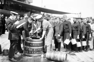 于是1740年,皇家海军中将爱德华·弗农指挥舰队出海作战,半路上他给水兵下了一道命令,把朗姆酒作为标准补给品,并规定饮酒时间和数量。每名水手每天都会分到大概半斤多的朗姆烈酒,下午发一半,日落后发另一半,另外给水兵的朗姆酒必须掺水之后饮用。