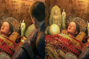 待行到东陵后,官员们将慈禧下葬到地宫当中,慈禧最为宠爱的太监李莲英,十分好奇慈禧的棺椁为何会渗出血迹。