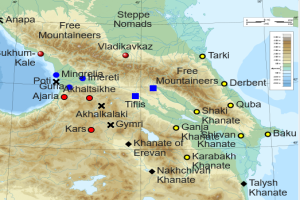 沙俄在与奥斯曼争夺多瑙河下游的同时,也在高加索地区发动了多次攻势,从奥斯曼及波斯帝国手中夺取了大片地区。虽然沙俄是奥斯曼与波斯共同的敌人,但二者之间早就因交战多年而彼此积怨颇深,导致双方缺乏互信与合作,无力阻止俄军对高加索的蚕食鲸吞。
