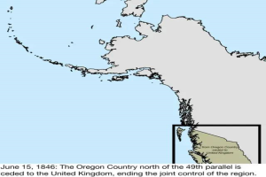 黑框围起来的就是俄勒冈地区的北端,后来以49°N为界,北边给英国,南边给美国,也就是如今的美加边界