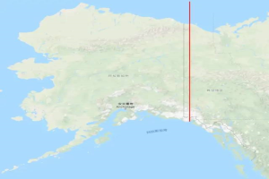 作为补偿得到了阿拉斯加东部的一些土地,将东边的界线划到了140°W。
