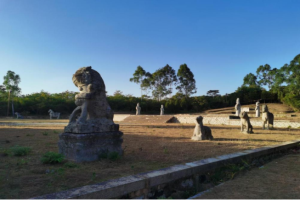 穿过石牌坊是一块宽阔的平地,墓园两侧分别安放着石马、石虎、石羊和石狮各一对,石兽造型古朴、形态灵动。再往上一个平台还安放着文武官员的石翁仲各一对。依清制,二、三品官员准立石马、石虎、石羊各一对,四、五品官员准立石马、石虎各一对,六品以下则一律禁立石兽。由此可见,施琅陵园四对石兽、两对石翁仲的墓葬规格等级之高。