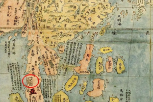 ▲明朝绘制的《万国坤舆全图》上标注有旧港宣慰司