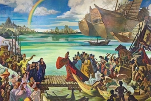 强大的郑和船队并没有引起沿途各国的恐慌,因为他们不是来军事征服的,而是以外交和贸易为目的,灿烂的中国文化、精美的中国商品都让当地人赞叹不已。