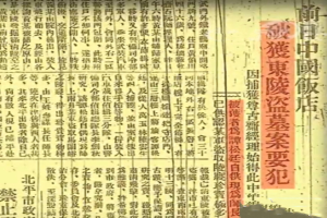 “前日中国饭店破获东陵盗墓案要犯,被获者自供现为师长。已供认蹂躏东陵,共掘十三棺,某军盗取陵寝珍宝极多,其珠宝价值逾亿,无法估算。”
