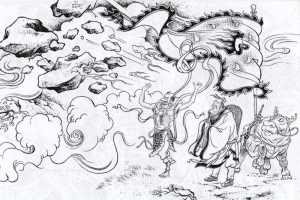 一把抓住妖怪手腕,称之为捏寸关之类,然后,将先天元气运上双瞳,使出金睛火眼的神通,钉住妖怪元神,使之不能变化, 之后随手捞起一块砚台,一下子将胡喜媚打死。