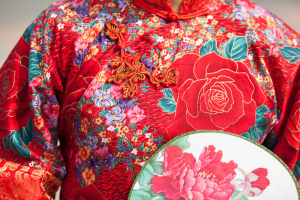 他没来得及回应,就看到宦官举着婚礼所用的器具走上前来,新娘穿着红色的礼服,紧紧的跟在后面,用扇子遮住了脸。
