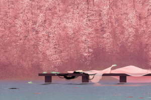 你的衣袖舞动掀起香风,飘荡不已。你的身姿是那么亭亭玉立,像一枝红莲摇曳在秋天的水雾里。你的娇躯舞动,像轻云刚刚被一阵柔风吹出山谷,又像是柳条被清风拂动,划破了池水,荡起了涟漪。