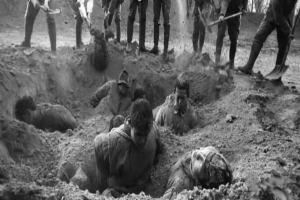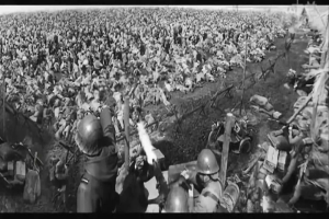 最后到晚上了,日军索性把六七百人一起赶到江边,用机关枪向他们交叉扫射。