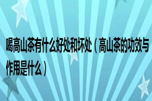 下面由养生王来解答问题。喝高山茶有什么好处和坏处,高山茶的功效与作用是什么很多人还不知道,现在让我们一起来看看吧!