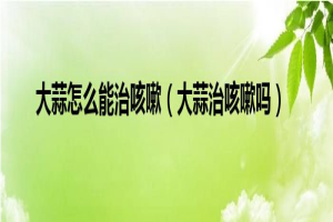 下面由养生王来解答问题。大蒜怎么能治咳嗽,大蒜治咳嗽吗很多人还不知道,现在让我们一起来看看吧!1、病情分析:大蒜可以治...下面由养生王来解答问题。大蒜怎么能治咳嗽,大蒜治咳嗽吗很多人还不知道,现在让 ......