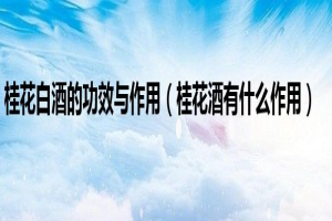 下面由养生王来解答问题。桂花白酒的功效与作用,桂花酒有什么作用很多人还不知道,现在让我们一起来看看吧!1、桂花酒有以下...下面由养生王来解答问题。桂花白酒的功效与作用,桂花酒有什么作用很多人还不知道 ......