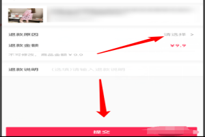 5,然后在申请退款中选择退款原因并点击底部的提交。如下图所示。
