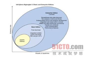 仅仅几年前,IBM开始在其实验室尝试使用Hadoop,但是它在去年将相关产品和服务纳入到商业版,甲骨文和微软在其之后才宣布各自也将积极接受该平台。IBM在去年5月推出了InfoSphere BigInsights软件。该软件包包括Apache Hadoop发行版、面向MapReduce编程的Pig编程语言、针对IBM的DB2数据库的连接件以及IBM BigSheets,后者是一种基于浏览器的、使用电子表格隐喻(spreadsheet-metaphor)的界面,用于探究和分析Hadoop里面的数据。
