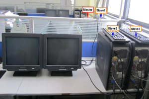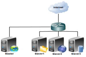 其中有一台机器是Master节点,即名称节点,另外三台是Slaver节点,即数据节点。这四台机器彼此间通过路由器相连,从而实验相互通信以及数据传输。它们都可以通过路由器访问Internet,实验网页文档的采集。