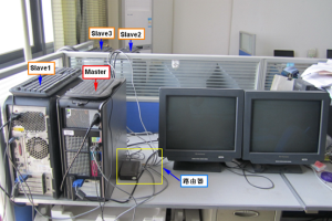 上面从两个角度来分别观察Hadoop集群部署,作为Hadoop集群的Master节点,用的是机器较为不错的新Dell,而三台Slave机器则是实验室淘汰的旧Lenovo,用一个小路由器他们组成了一个局域网。