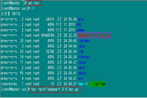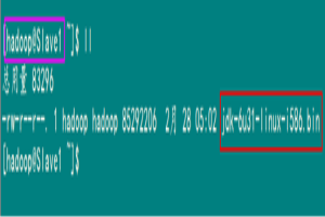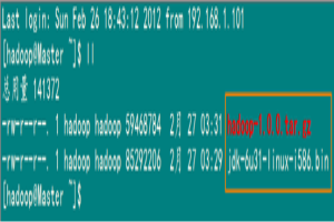 刚才我们用一般用户(hadoop)通过FlashFXP软件把所需的两个软件上传了跟目下,我们通过命令查看下一下是否已经上传了。