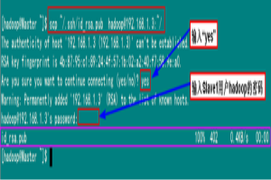 Master(NameNode | JobTracker)作为客户端,要实现无密码公钥认证,连接到服务器Salve(DataNode | Tasktracker)上时,需要在Master上生成一个密钥对,包括一个公钥和一个私钥,而后将公钥复制到所有的Slave上。当Master通过SSH连接Salve时,Salve就会生成一个随机数并用Master的公钥对随机数进行加密,并发送给Master。Master收到加密数之后再用私钥解密,并将解密数回传给Slave,Slave确认解密数无误之后就允许Master进行连接了。这就是一个公钥认证过程,其间不需要用户手工输入密码。重要过程是将客户端Master复制到Slave上。