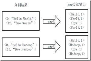 2)将分割好的<key,value>对交给用户定义的map方法进行处理,生成新的<key,value>对,如图4-2所示。