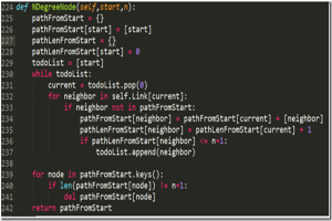 下面是Python写的N度人脉的算法,可以输出某个用户的N度好友,代码详见这里。