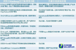 相比其他版本的Hadoop,英特尔Hadoop发行版有何优势呢?众所周知,英特尔在开放服务器领域有着丰富而又完整的解决方案,在云计算、数据中心领域积累了大量实践经验。而Hadoop无疑是云计算领域中最炙手可热的技术,也是商业价值最突出的大数据处理平台。英特尔结合自己的硬件技术和成熟经验,打造面向大数据应用的Hadoop平台,有助于提供相比其他Hadoop平台更可靠、更高性能、更多和更易于管理的大数据解决方案: