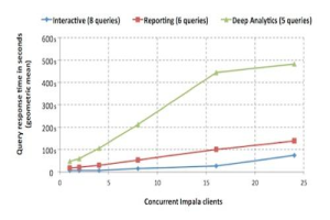 下图显示在加入更多并行客户端后,Impala将达到超线性标度的提升: