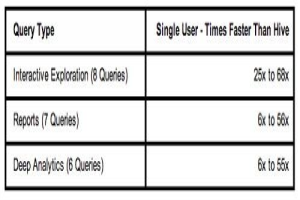虽然Impala的性能已经相当出众,但是Cloudera认为在下两个版本中完全实现Parquet和多线程执行后,Impala性能将再次得到跨越性提升。