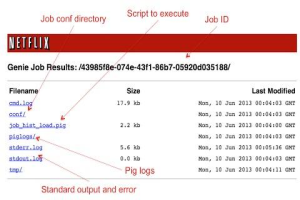 Genie提供了Hadoop环境云中的作业和资源调度,从终端用户的角度,Genie剥离了各种Hadoop资源的物理细节,无需安装Hadoop客户端情况下提供了一个监视及提交Hadoop、Hive和Pig作业的途径——REST-ful Execution Service,负责整个集群以及相关的Hive和Pig配置。