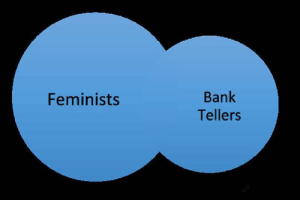 哪一个更有可能发生:Linda是一个银行柜员或女权主义柜员?假设圆圈大小与现实成比例。