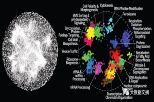 举例来说,下列的图表表示着在啤酒酵母细胞中基因间的每一次相互作用。