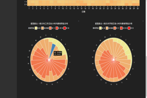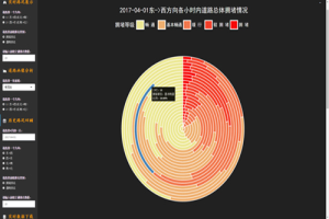 这里分为工作日和节假日来呈现某条道路24小时内的总体交通状况,其中每一片花瓣映射着各种交通状况的比例。