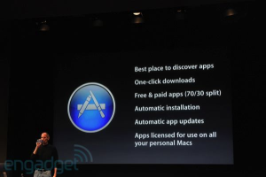 会上,乔布斯还宣布,将在三个月后推出适用于Mac平台的应用程序商店,将iOS中大获成功的应用平台体验移植到Mac桌面端上。