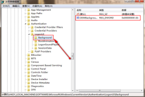 2、依次展开“HEKY_LOCAL_MACHINE\SOFTWARE\Microsoft\Windows\CurrentVersion\Authentication\LogonUI\Backgroun”,找到OEMBackground选项如下图所示: