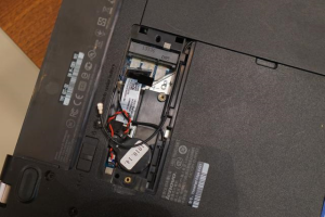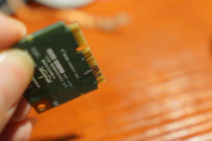 先拆开无线网卡后盖,取出原无线网卡: