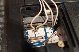 焊接好USB USB- GND 3.3V,这里需要注意,miniPCIE接口最高只提供3.3v外部供电USB网卡是5V供电,这里不知道3.3v能否驱动。不管他如何,直接引出连准备测试。不管他如何,直接引出连准备测试。