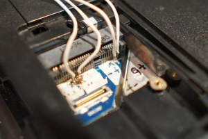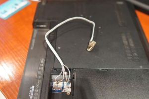 在此之前,我还切割了这张网卡USB连线的,(看到下面的飞线了吗),结果割的时候太用力了,把下层板也割了,网卡放上去直接无法搜索wifi型号,我勒个去啊,悲催如我。。。。。。。