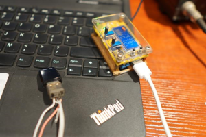 找来一个USB母头,平时我一般不测试,这次安全点,还是找个座位测试。焊接上USB母座头: