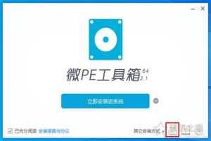 1、需要准备一个U盘,找另一台电脑制作U盘启动工具;双击打开下载微PE工具箱软件,弹出微PE工具箱主界面后,我们选择其他安装方式的U盘图标PE将工具箱安装在您的U盘中,如下图所示。