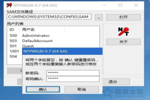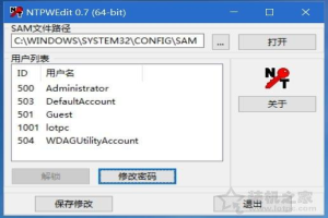 注:NTPWEdit0.7支持Windows 2000/2003,XP、Vista、Win7、Win8、Win10操作系统修改重置启动密码。