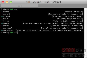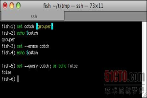 输入 set variable name value 来设置变量。与内置命令 functions 一样,输入 set --erase variable name 就可以删除一个变量。输入美元符号($)和变量名,就可以获取变量中存储的值,见 图 3。