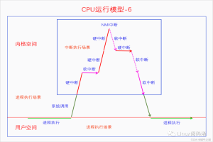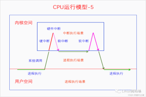 实际的CPU运行模型在这个基础之上又变得非常复杂了,如下图所示。在学习了中断机制、系统调用和进程调度之后,对下面这几张图应该能理解地比较透彻。