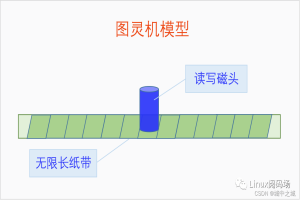 什么是图灵机,我们为什么要讲图灵机?图灵机是计算机的数学模型,我们在这里讲图灵机并不是为了学习图灵机本身,图灵机的理论还是很复杂的。我们这里讲图灵机就是为了理解一下计算机的运行模型,明白CPU的运行是线性的。我们先来看一下图灵机的定义,图灵机是英国数学家阿兰·图灵于1936年提出的一种抽象的计算机模型,即将人们使用纸笔进行数学运算的过程进行抽象,由一个虚拟的机器替代人类进行数学运算。它有一条无限长的纸带,纸带分成了一个一个的小方格,每个方格有不同的内容。有一个机器头在纸带上移来移去。机器头有一组内部状态,还有一些固定的程序。在每个时刻,机器头都要从当前纸带上读入一个方格信息,然后结合自己的内部状态查找程序表,根据程序把信息输出到纸带方格上,并转换自己的内部状态,然后进行移动。我们可以看出图灵机的定义还是很简单的,图灵机的运行模式和我们现在的CPU运行模式还是很像的,我们下面画一个图灵机的运行模型。