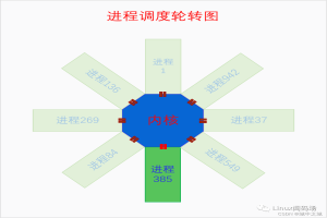 图片展示的是UP(单处理器)调度的情况,每个时刻最多只有一个进程会被选中在CPU上运行。如果是SMP(多处理器)的话,就是有NR_CPU个这样的图同时运转,互不干扰,这是从运行的角度看是这样的,但是如果从空间的角度看的话,因为内核空间只有一个,所以图片应该是中心捏合在一起,但是翅膀各是各的那种样式的图。